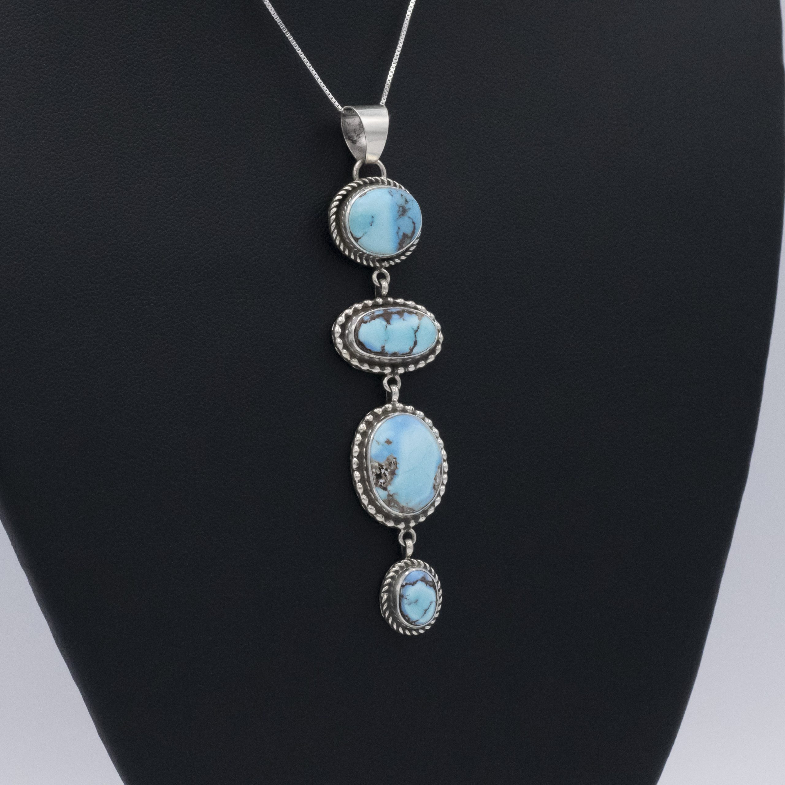 This 4 Stone Natural Golden Hills Dangle Pendant by Ruth Ann Begay, Navajo, is sure to garner attention and envy!
