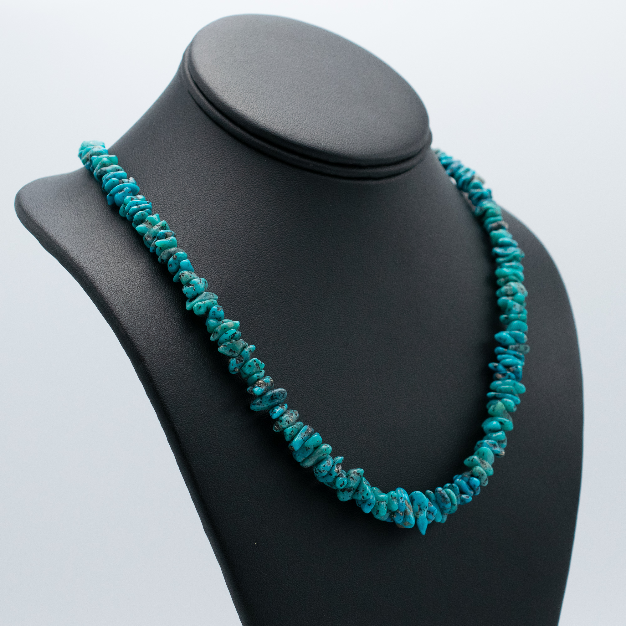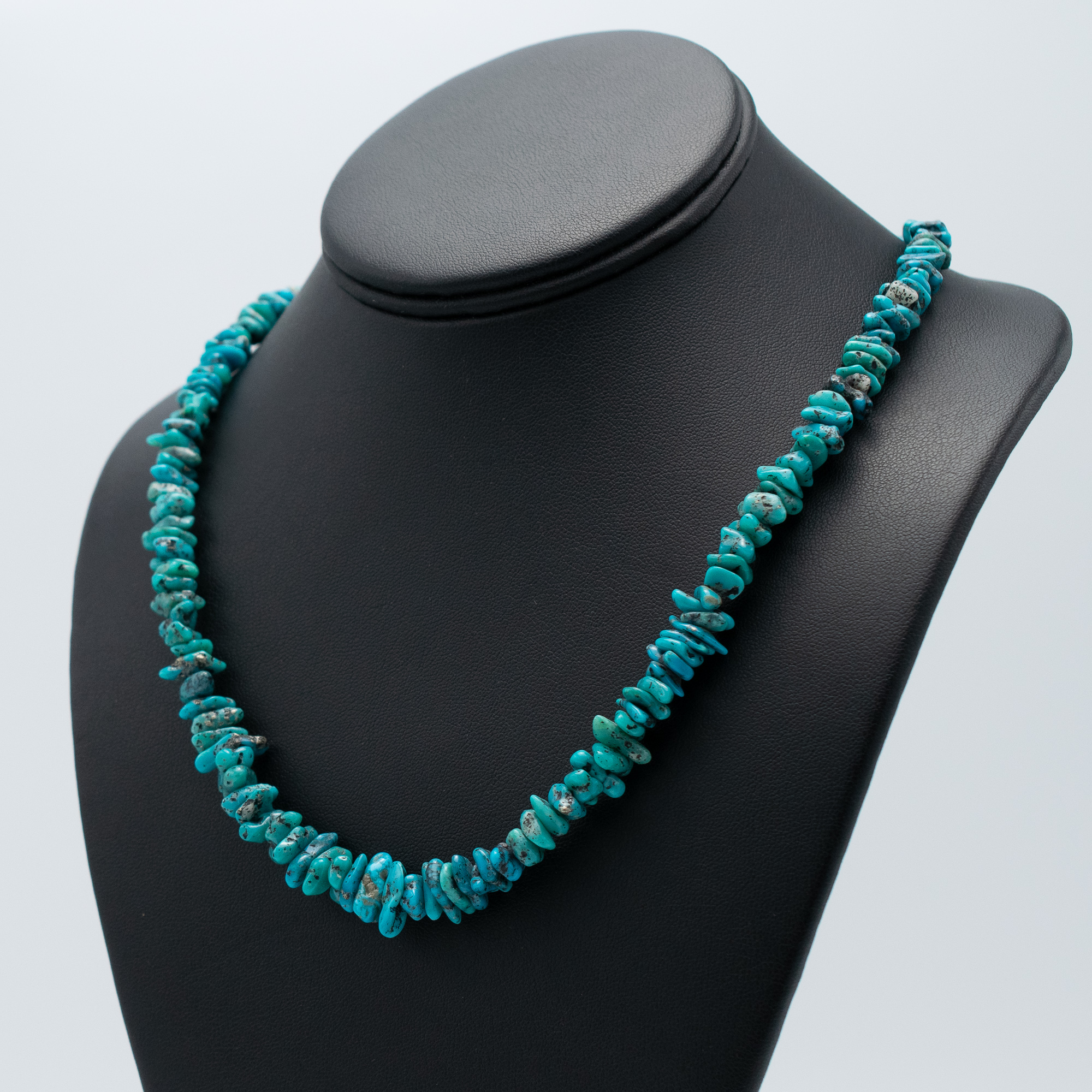 This Stabilized Campitos Turquoise Bead Necklace by Kathleen Sanchez (San Felipe Pueblo) brings vibrant desert blues to life in a timeless strand of polished nuggets. Hand-strung with care, the natural variation in color and matrix highlights the beauty of the Campitos turquoise, while the soft tapering of the beads creates a flattering, wearable silhouette. A classic layering piece or standout on its own, this necklace is a radiant example of Native American artistry.