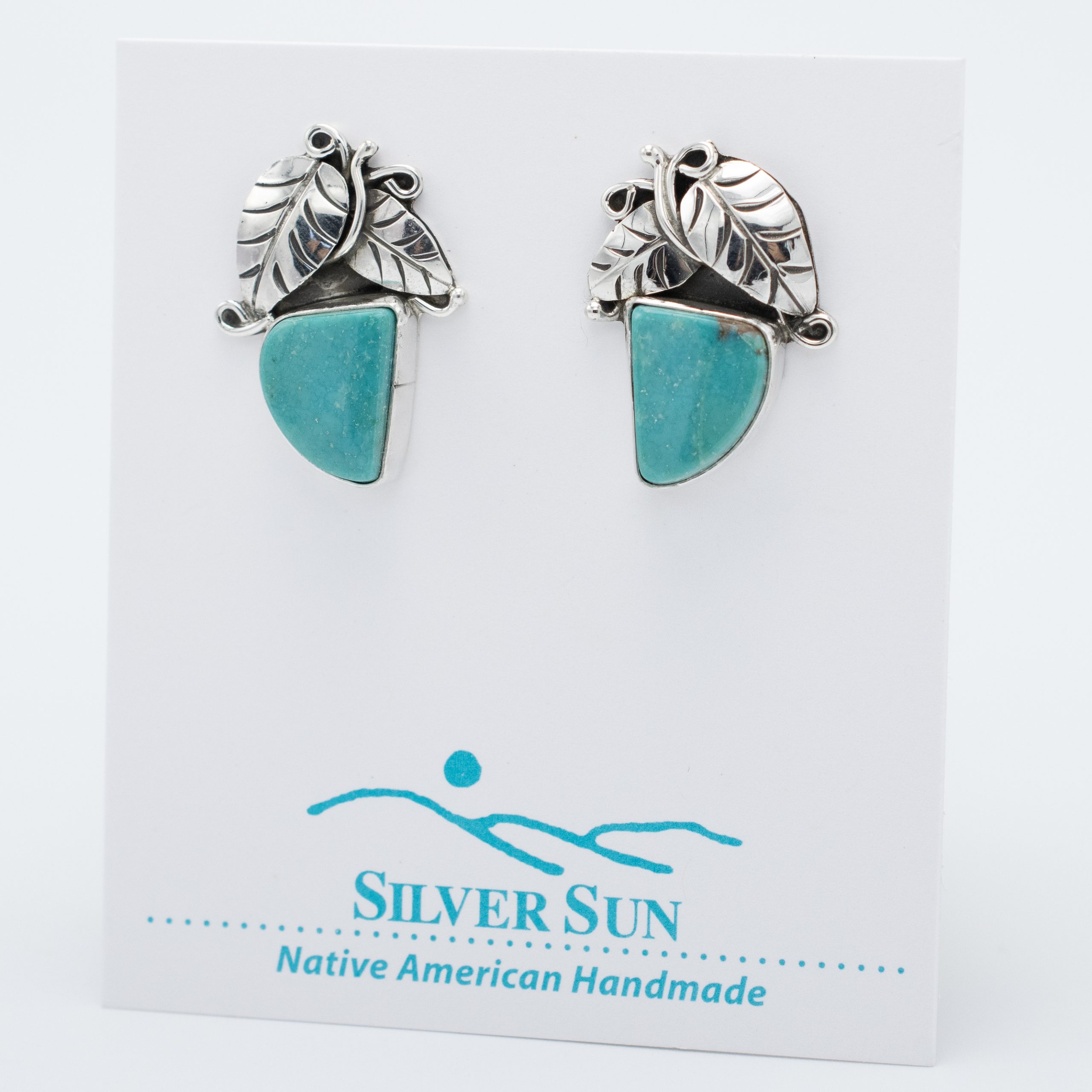 The Fox Turquoise Silver Leaf Earrings by Ruth Ann Begay exude a natural elegance. Each earring features a unique Fox turquoise stone in a soft, earthy blue-green shade, complemented by intricate silver leaf accents. The organic shapes and detailed silverwork bring a touch of nature’s beauty, making these earrings a graceful addition to any collection.