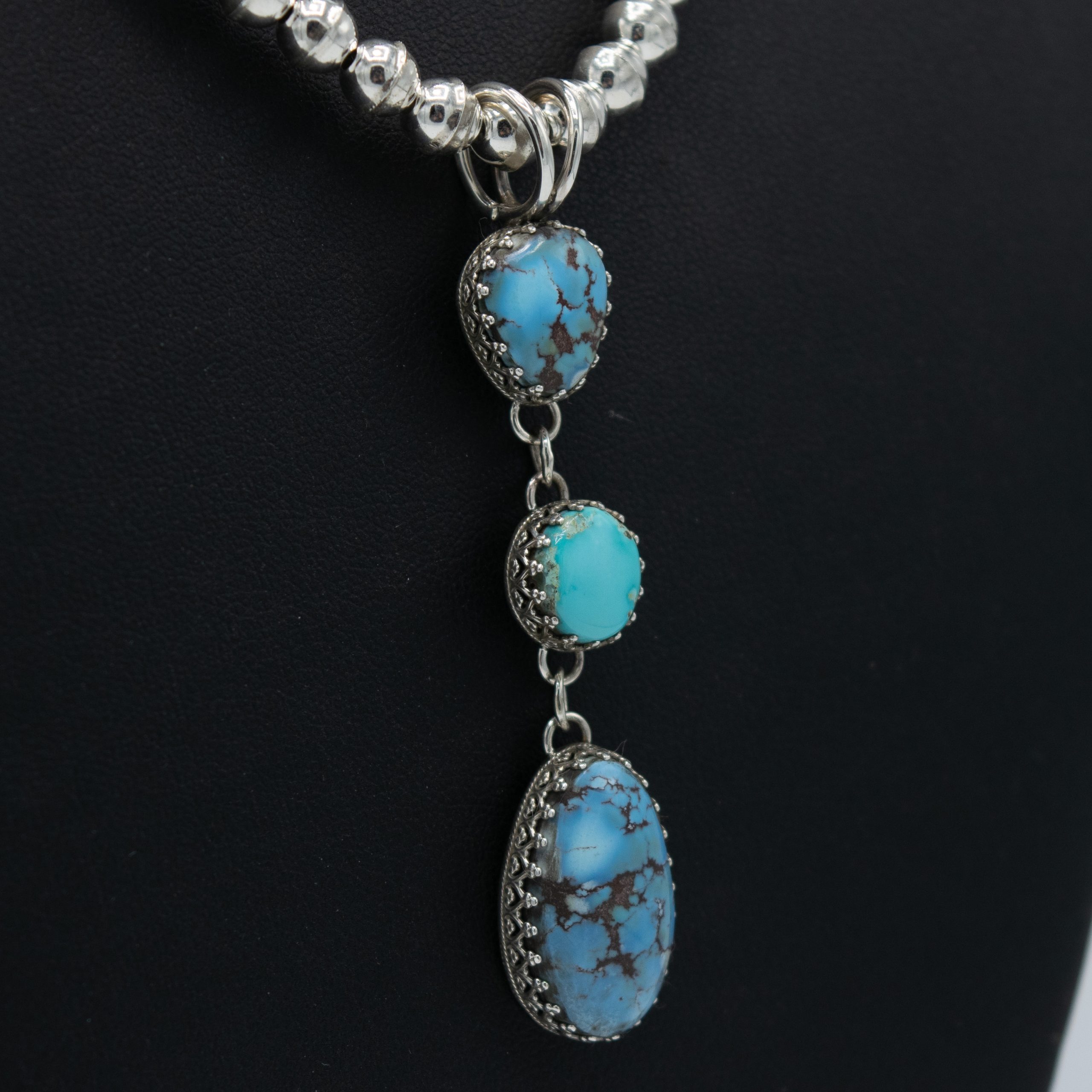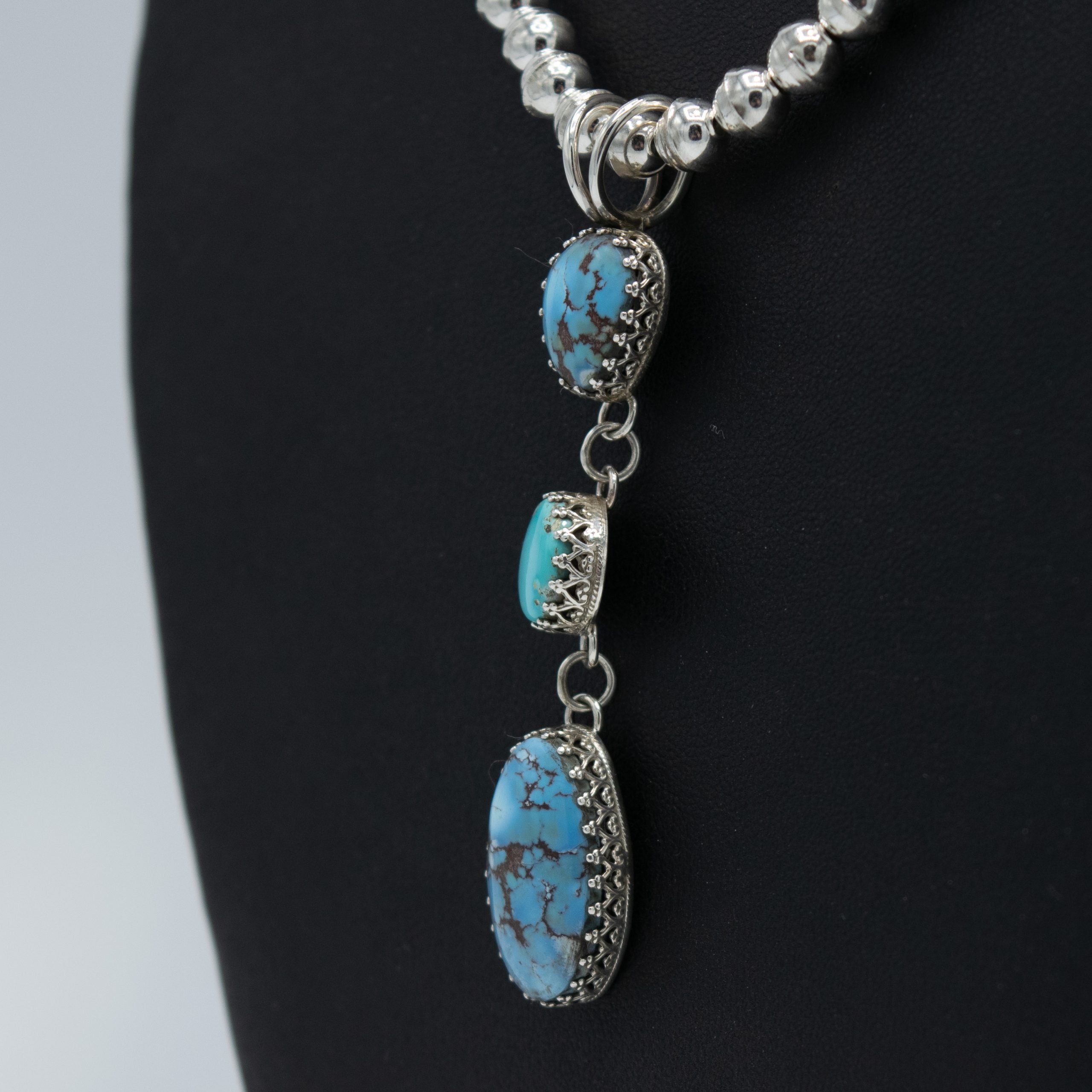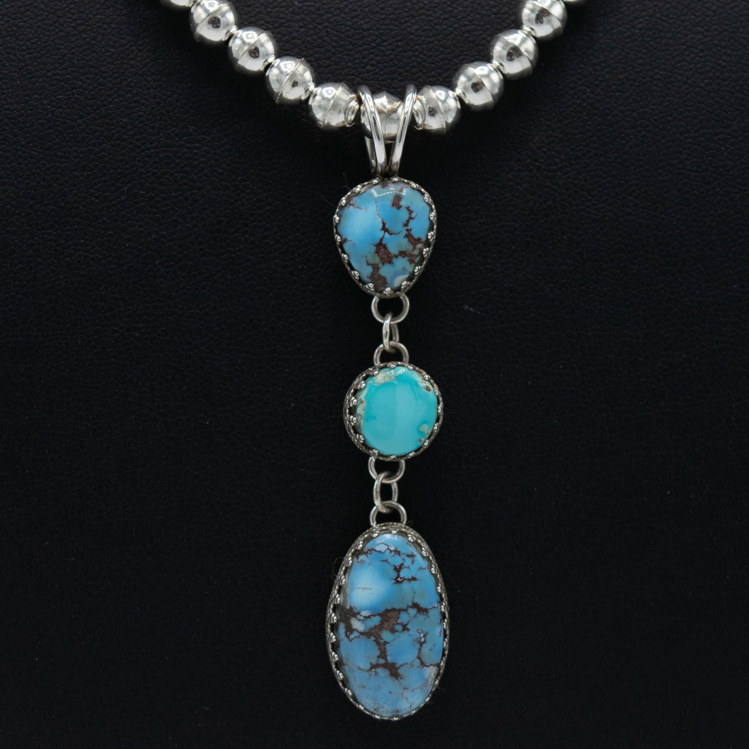 This natural turquoise drop pendant made by Bryant Martinez, Navajo, features Golden Hill and Persian turquoise making this piece a sensational international collaboration!