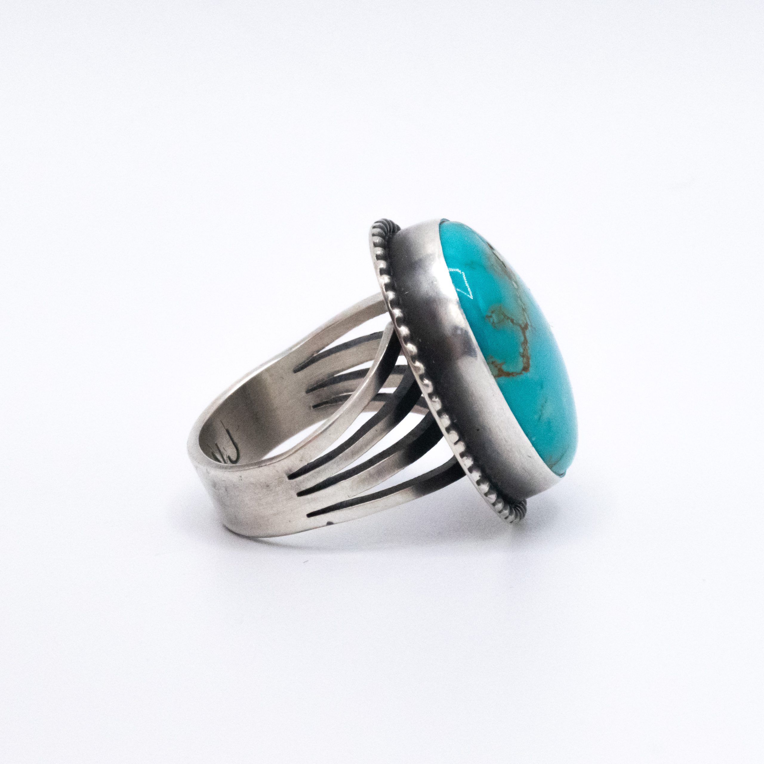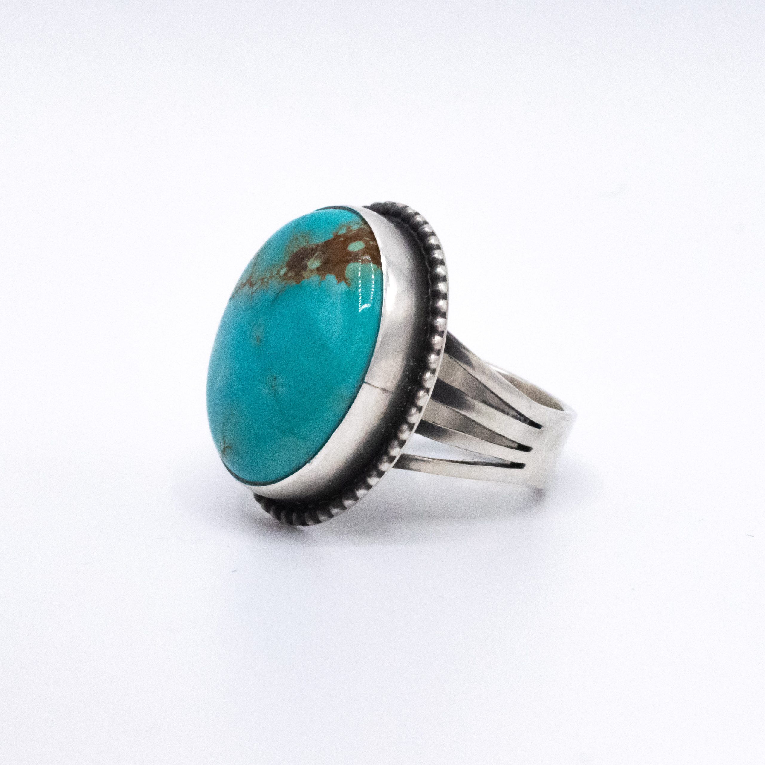 Teal and nicely domed, this Kingman stabilized turquoise ring is a classic, one that will last into generations. Beautiful!