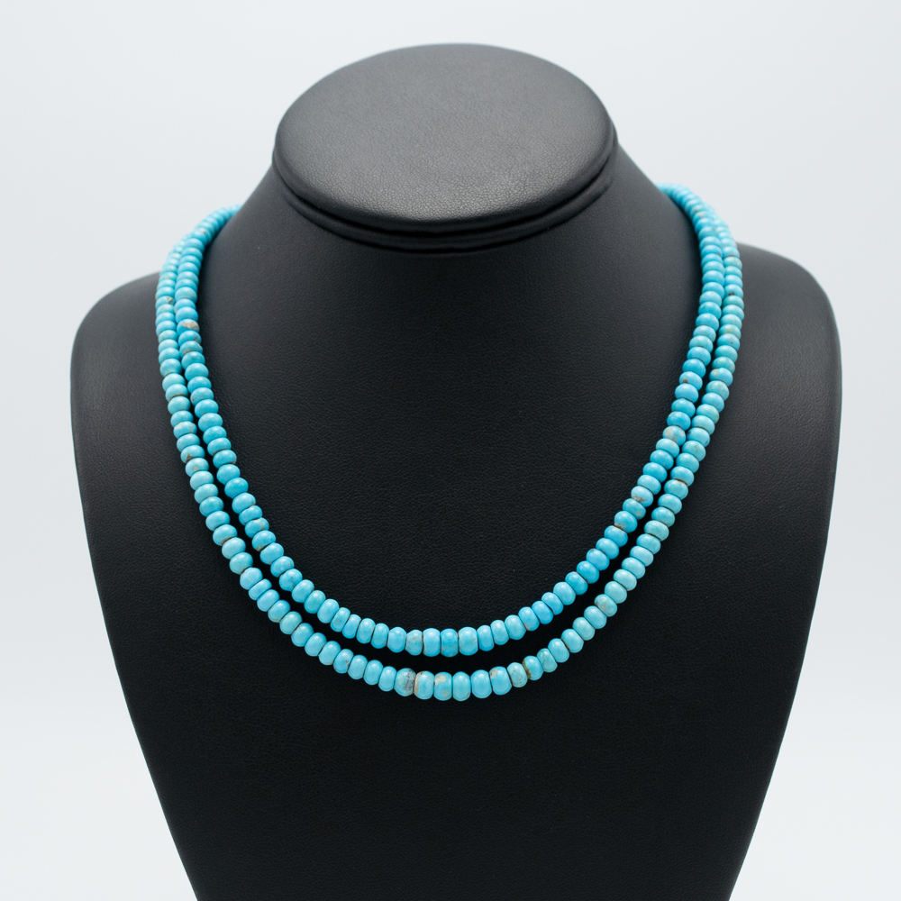 Stabilized Kingman Turquoise Bead Necklace by Kathleen Sanchez, San Felipe Pueblo.