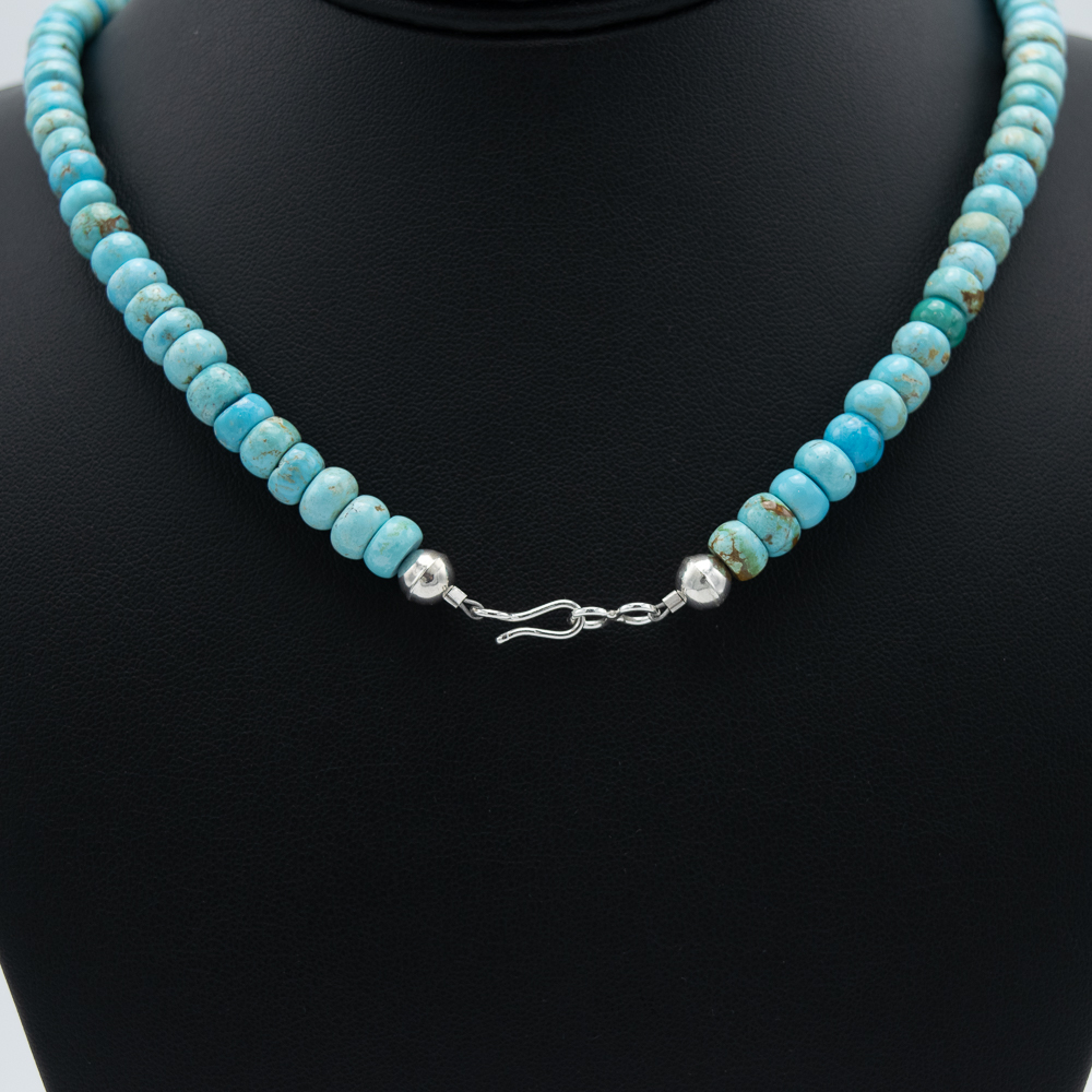 Stabilized Kingman Turquoise Bead Necklace by Kathleen Sanchez, San Felipe Pueblo.