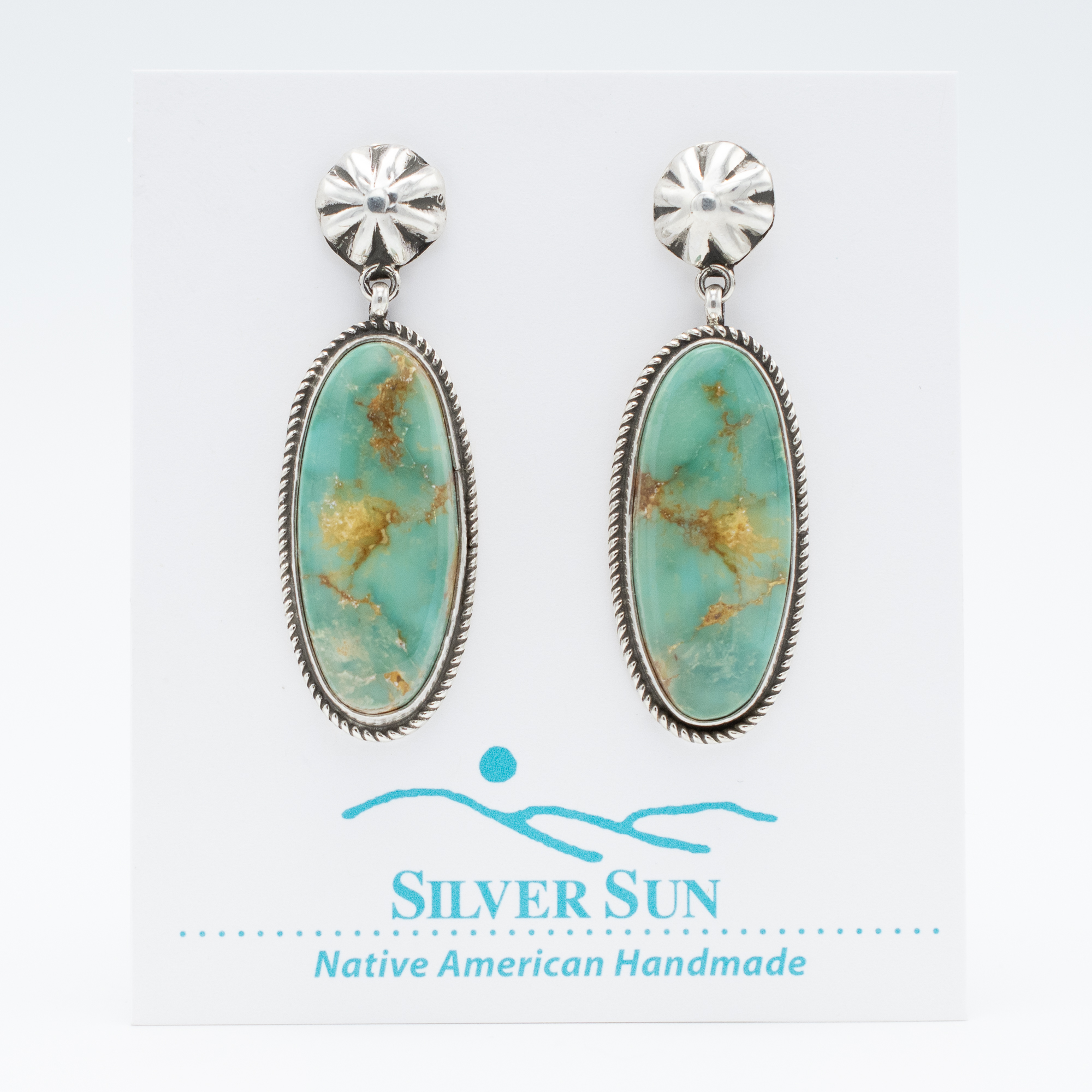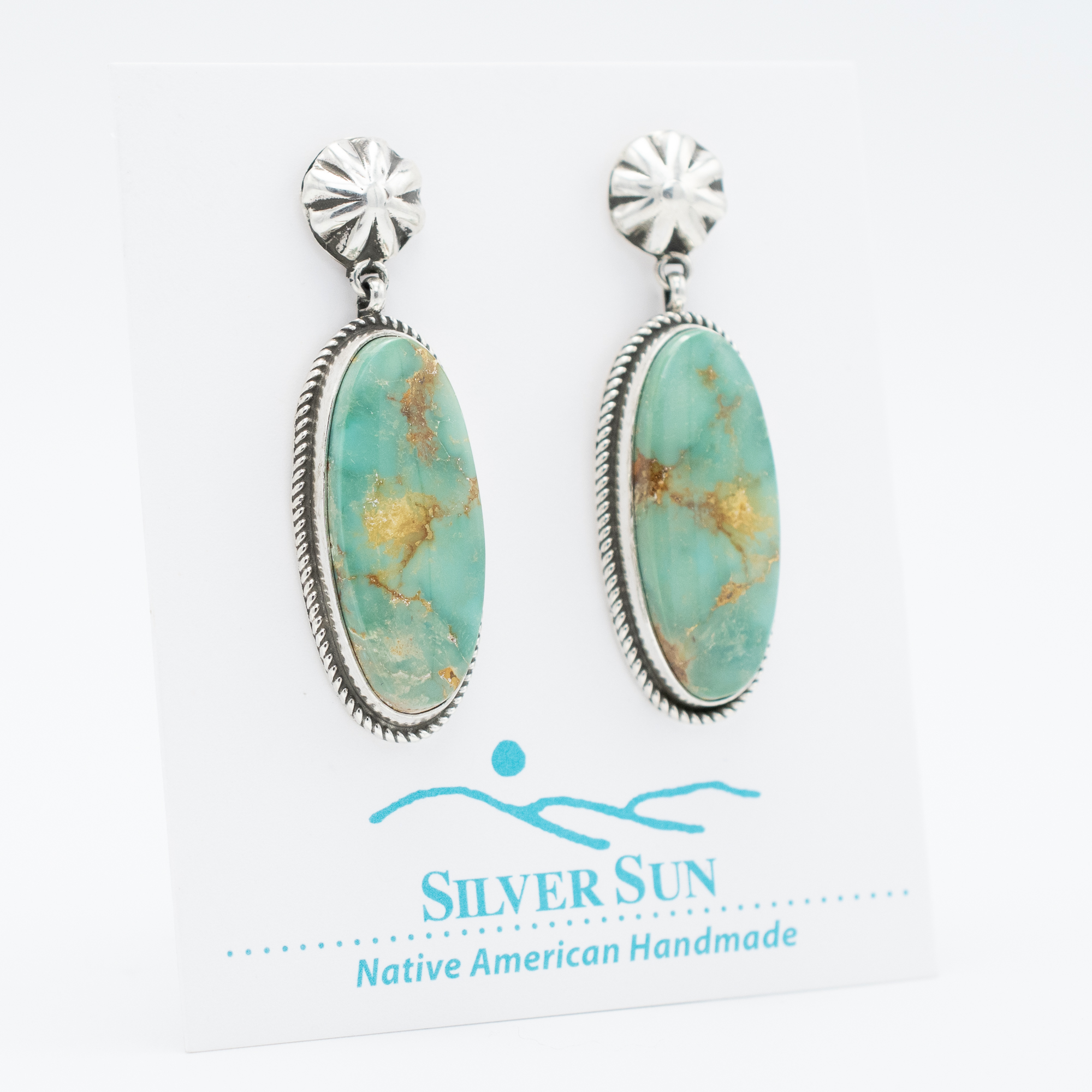 Natural Ma’anshan Turquoise Earrings by Ruth Ann Begay, Navajo.