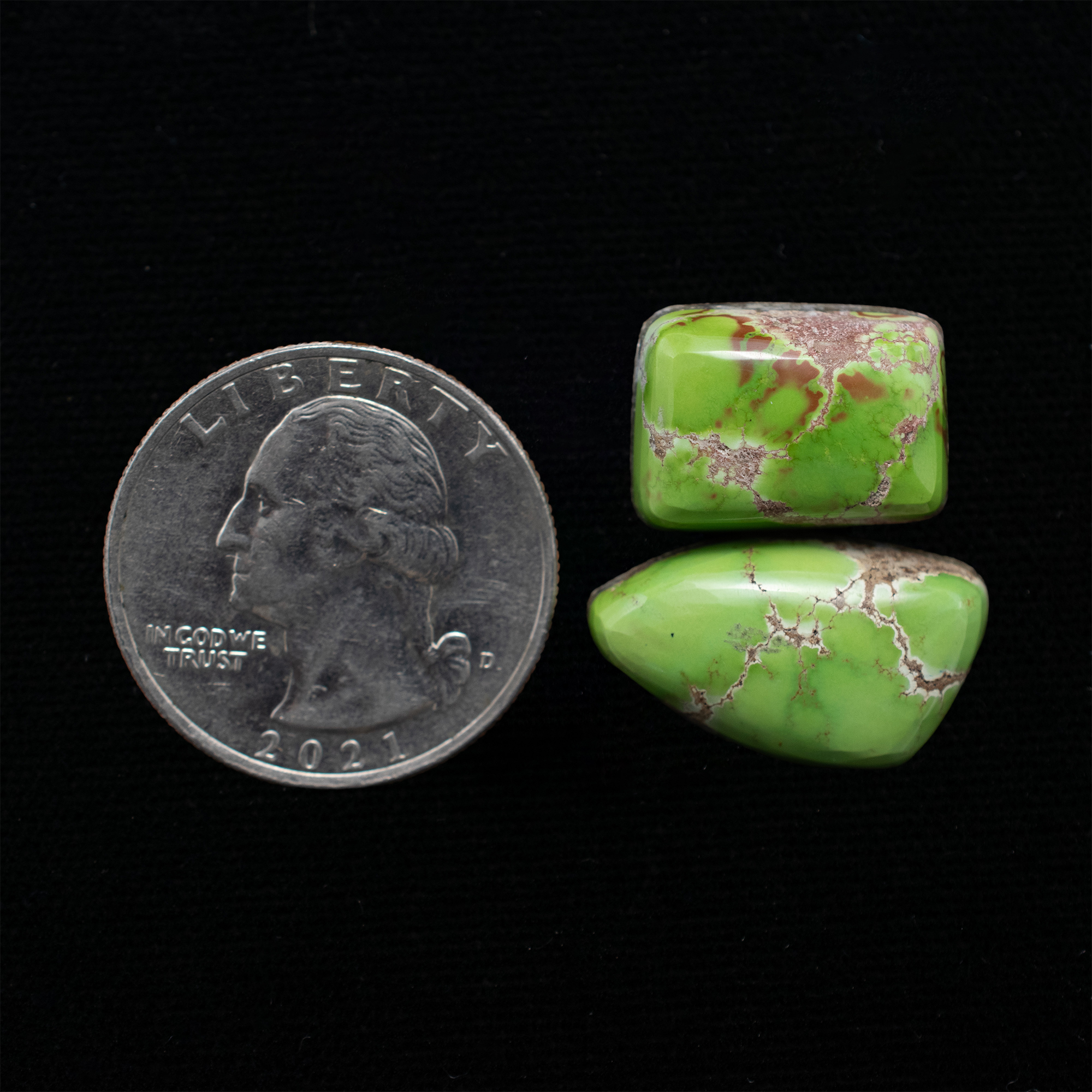 These 2 Natural Grasshopper Turquoise Cabochons are available as a set for $300 or individually for $15 per carat.