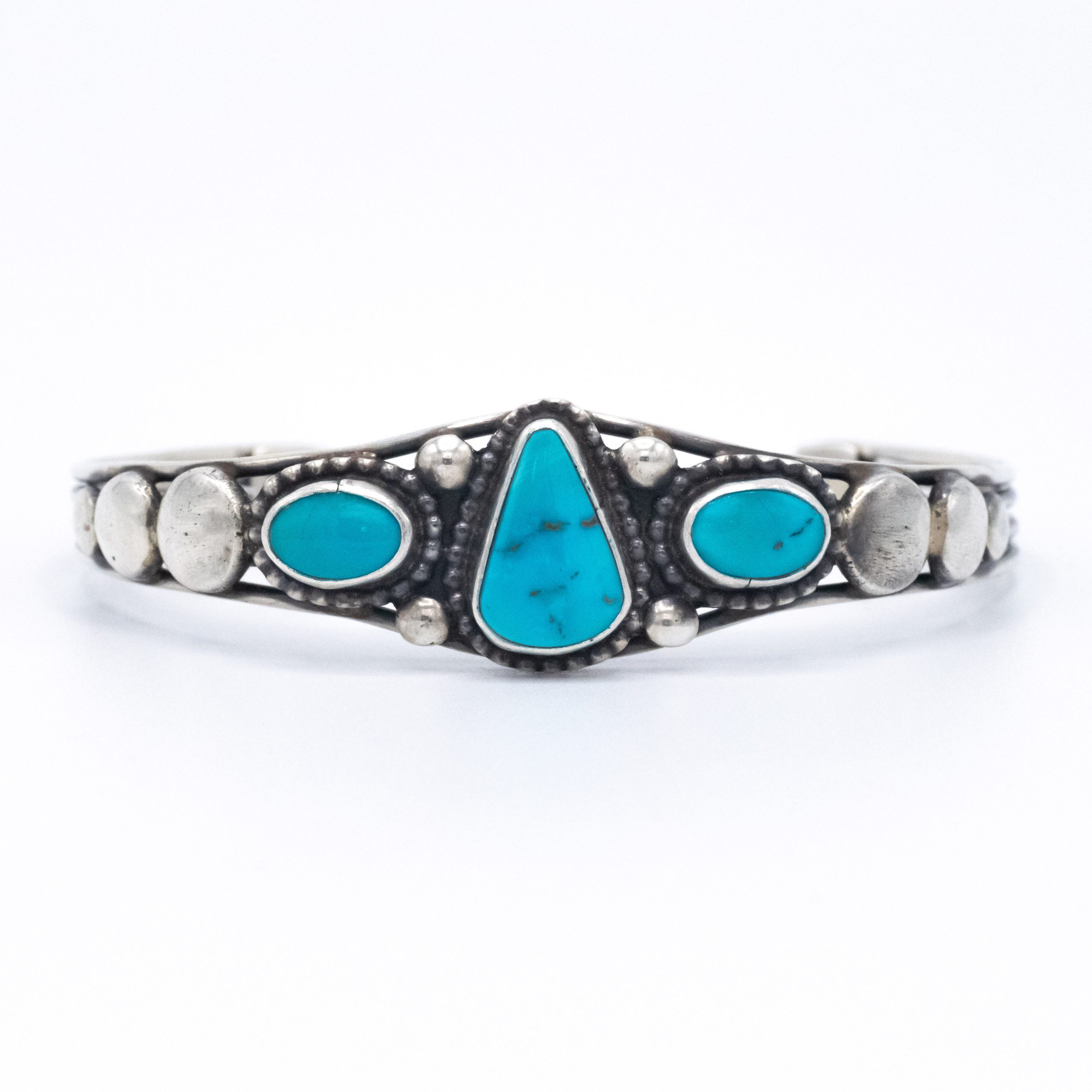Three sweet Morenci stones are set with spheres, orbs, and raindrops; it’s a bracelet that will surely garner high compliments!