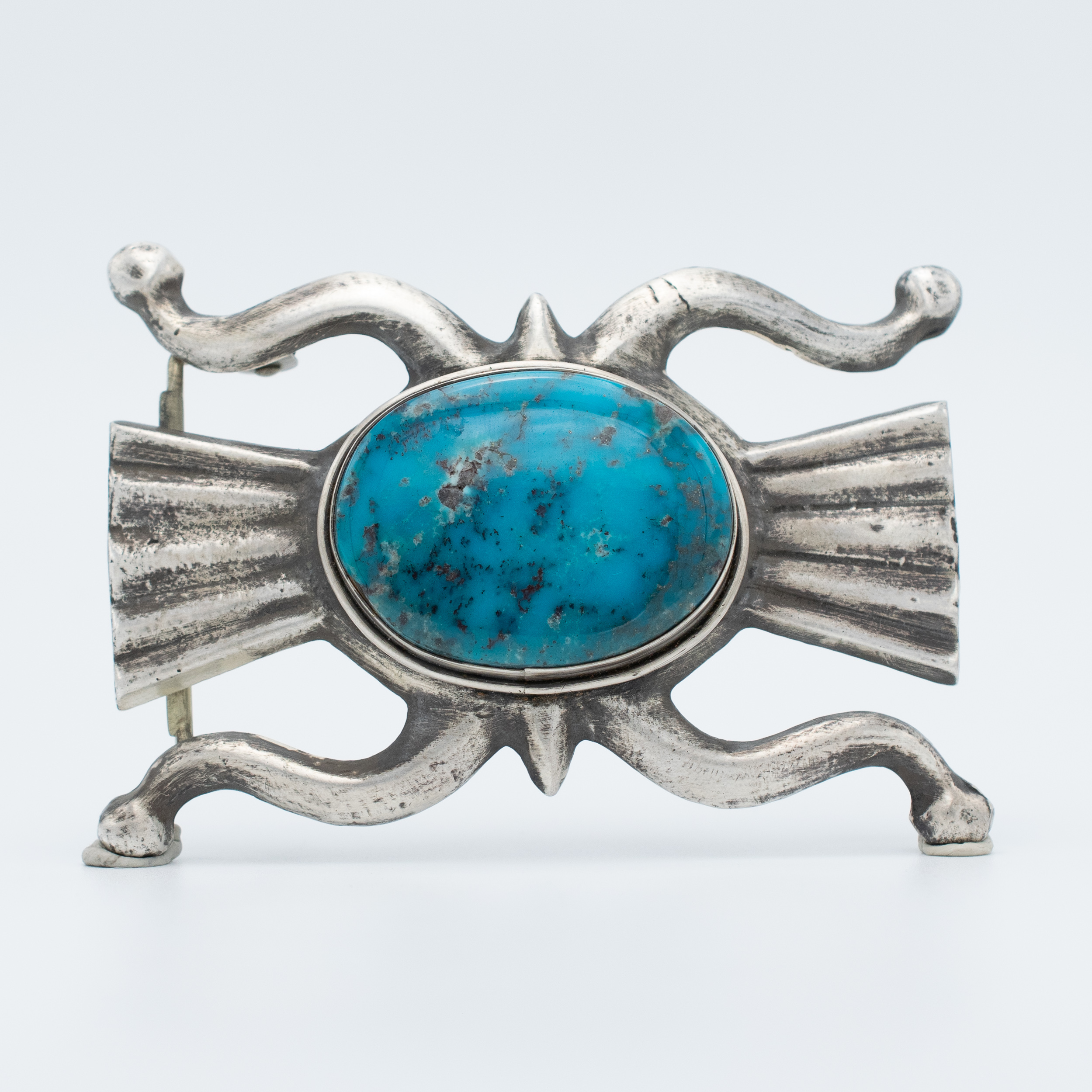 Make a statement with this eye-catching belt buckle by FL Begay, Navajo. Featuring a large piece of Red Skin Turquoise, it’s a distinctive accessory with Southwestern flair.