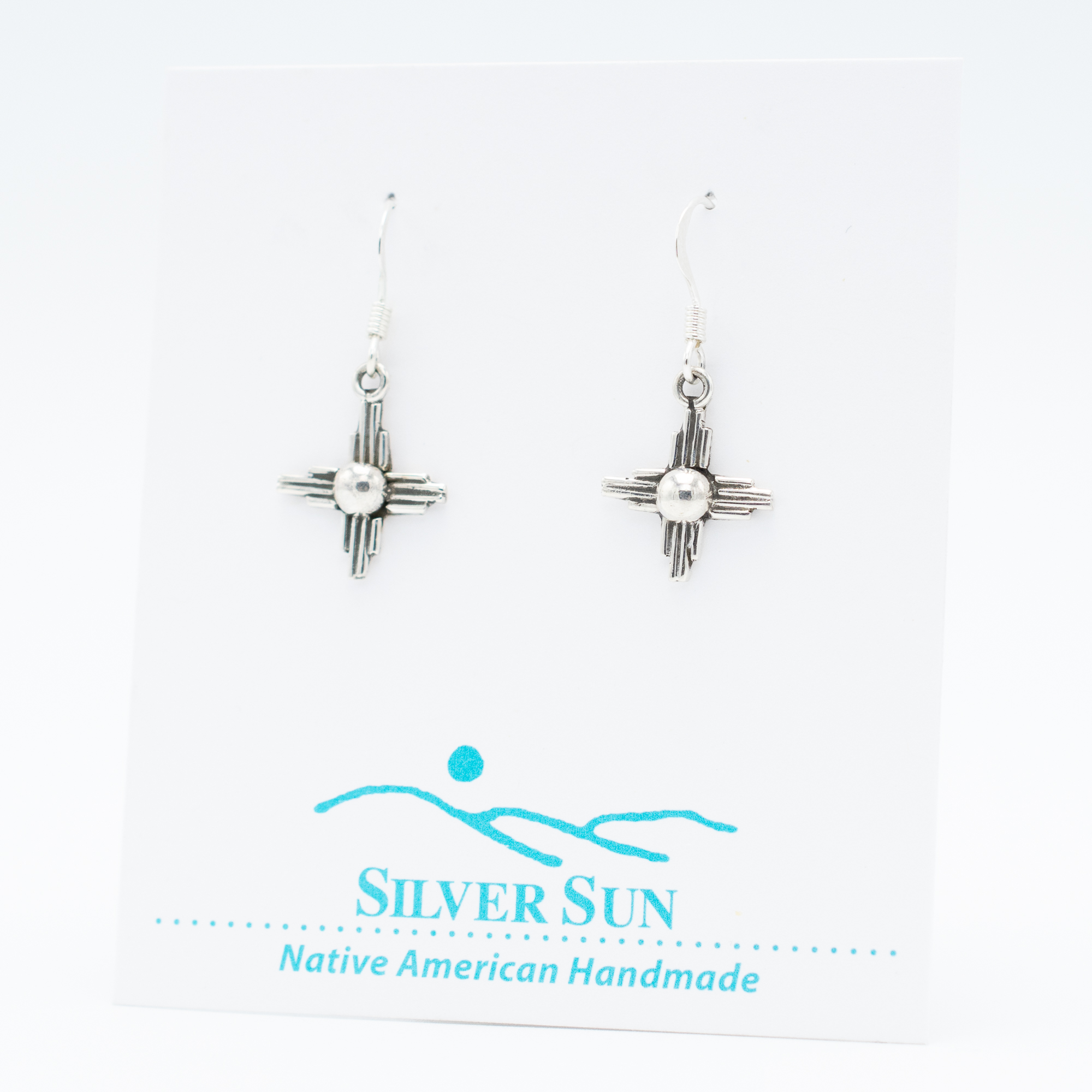 In this tribute to the Zia, intricate silver wires radiate away from a small orb of a sun. Nice work by Ruth Ann Begay, Navajo.