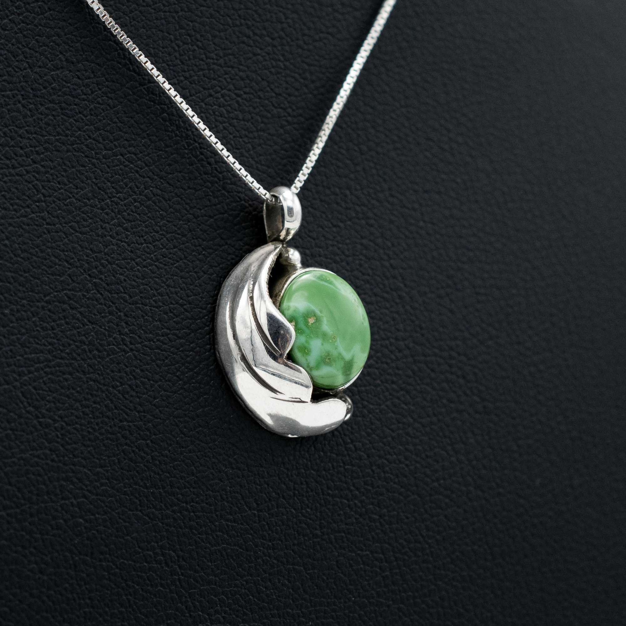 This elegant Sonoran Gold Turquoise Pendant by Navajo artist Ruth Ann Begay showcases the serene green hues of Sonoran gold turquoise. The stoneis beautifully cradled by a sterling silver wing design, offering a graceful and timeless appeal. This pendant pairs perfectly with any chain for a subtle yet striking look. Handcrafted with Navajo artistry, this piece embodies both beauty and tradition.