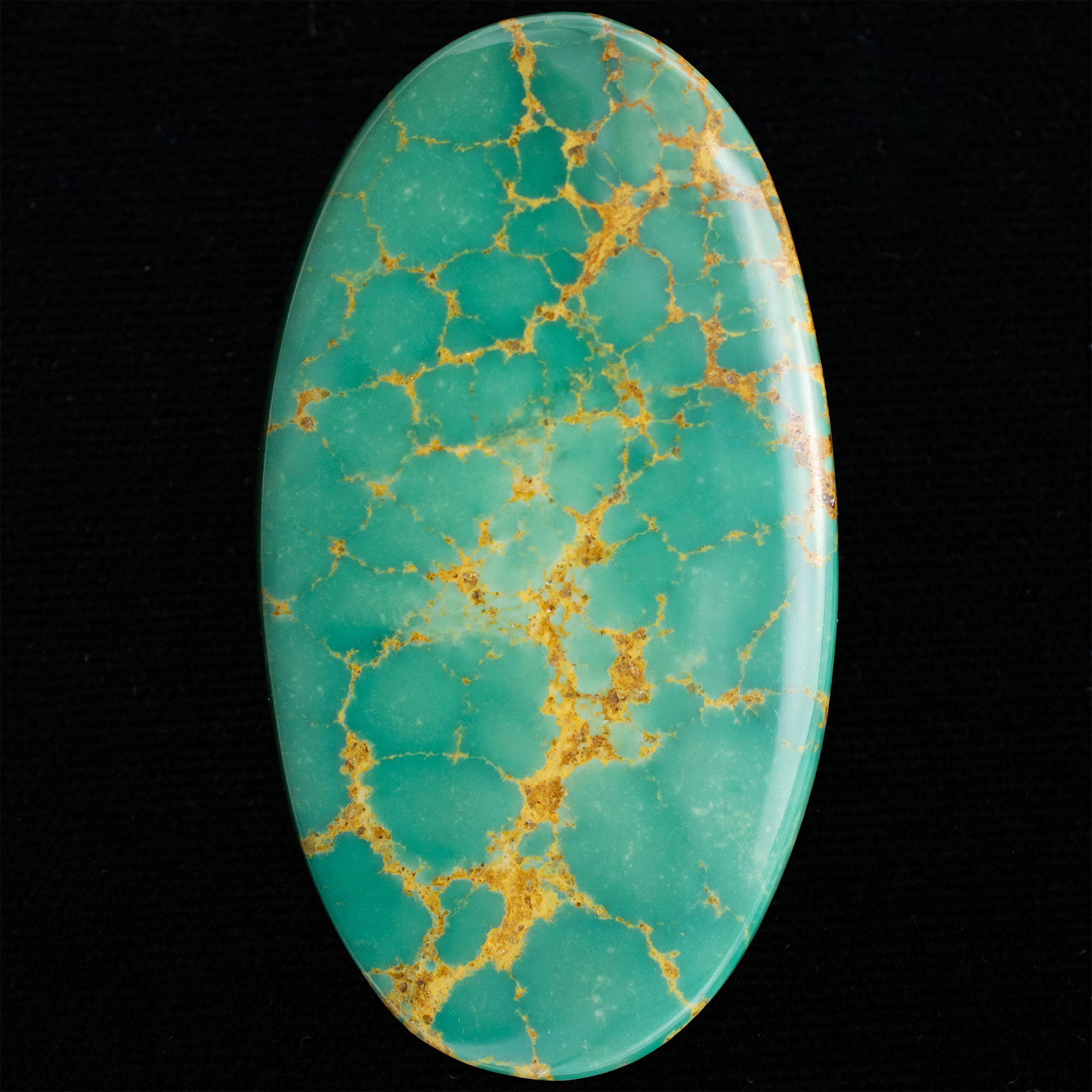 We purchased this Stabilized Kingman Turquoise cab from the owner of the Kingman Mine, Marty Colbaugh. He helped us pick out the very finest stabilized cabs he had available around 2014.