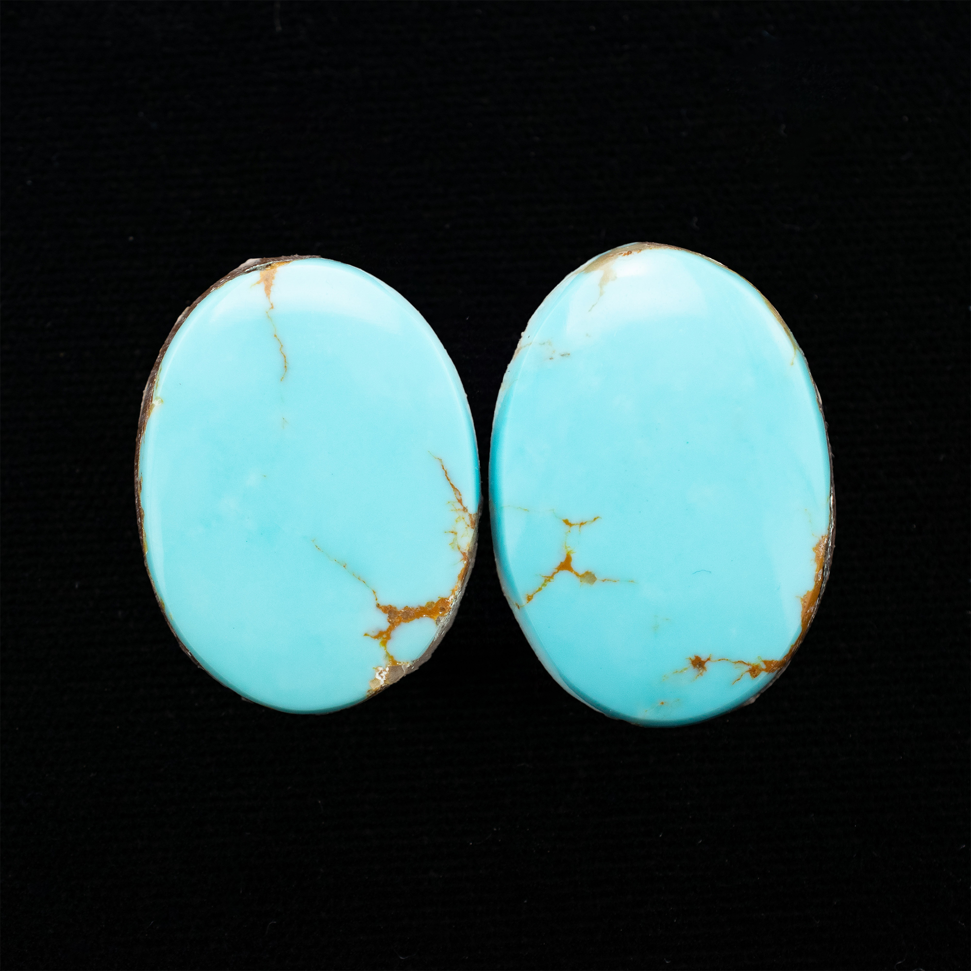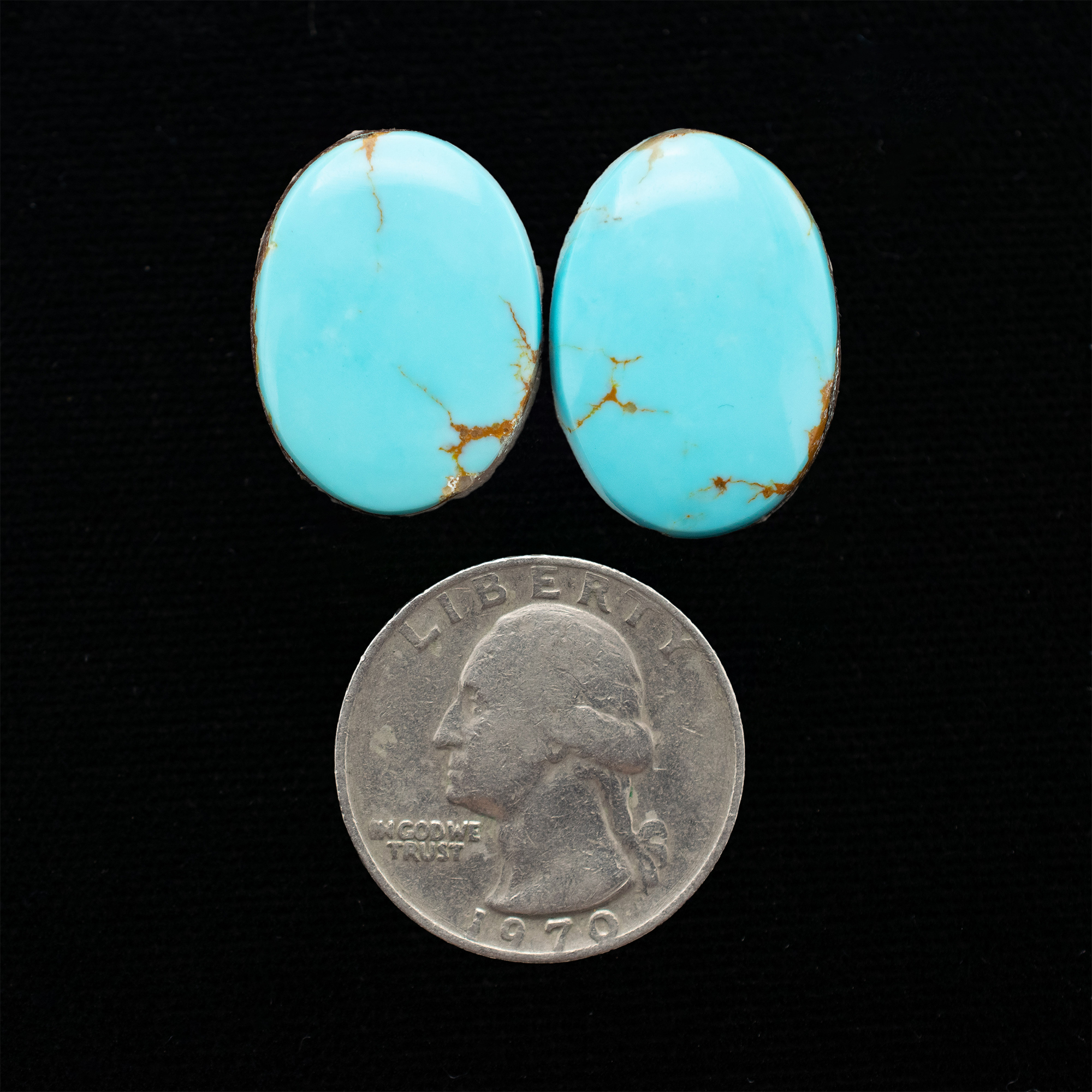 We purchased these Stabilized Kingman Turquoise cabs from the owner of the Kingman Mine, Marty Colbaugh. He helped us pick out the very finest stabilized cabs he had available around 2014.