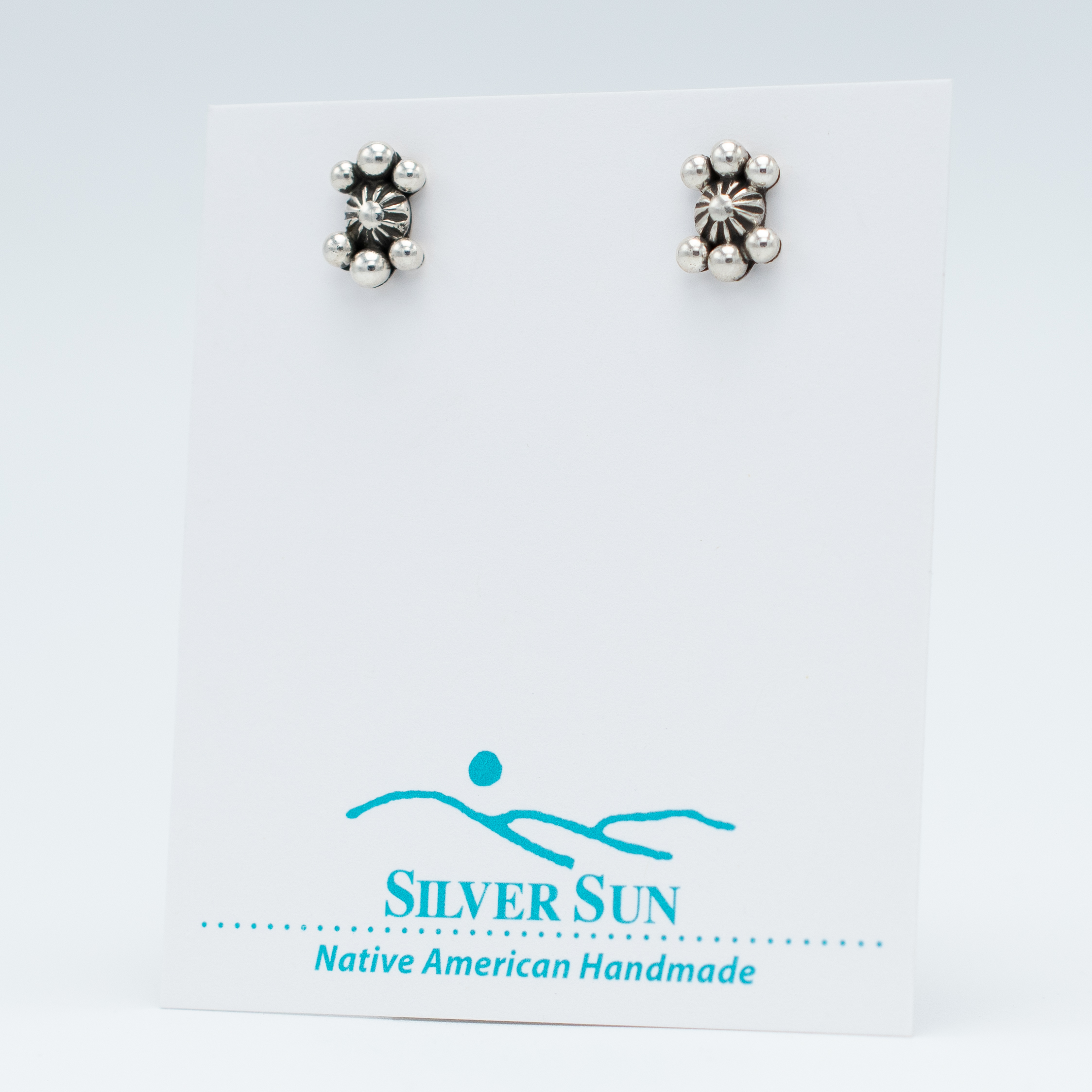 Ruth Ann Begay’s vintage-inspired earrings exude timeless elegance. Featuring an intricate rosette design and silver raindrops, they add a touch of classic beauty to any ensemble.