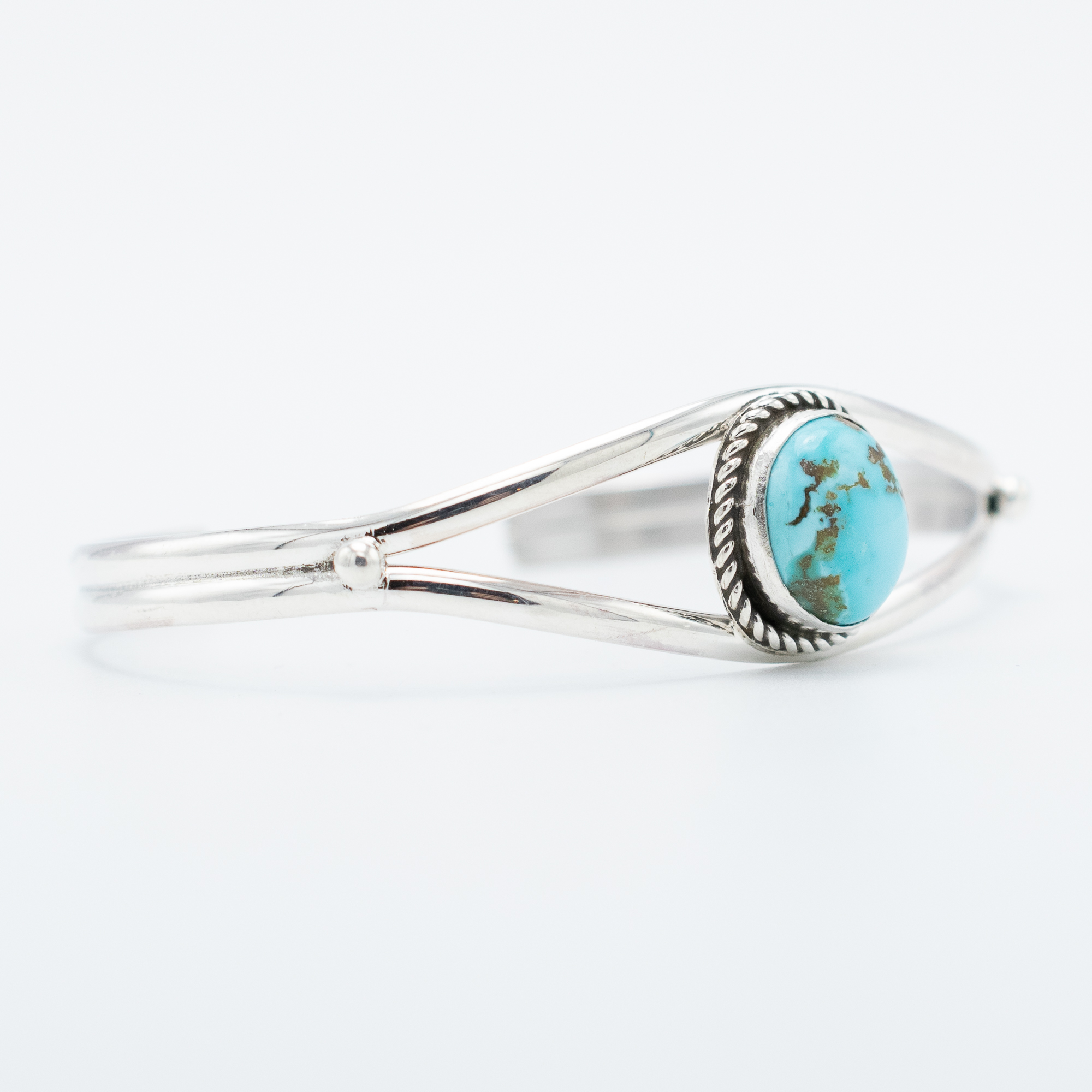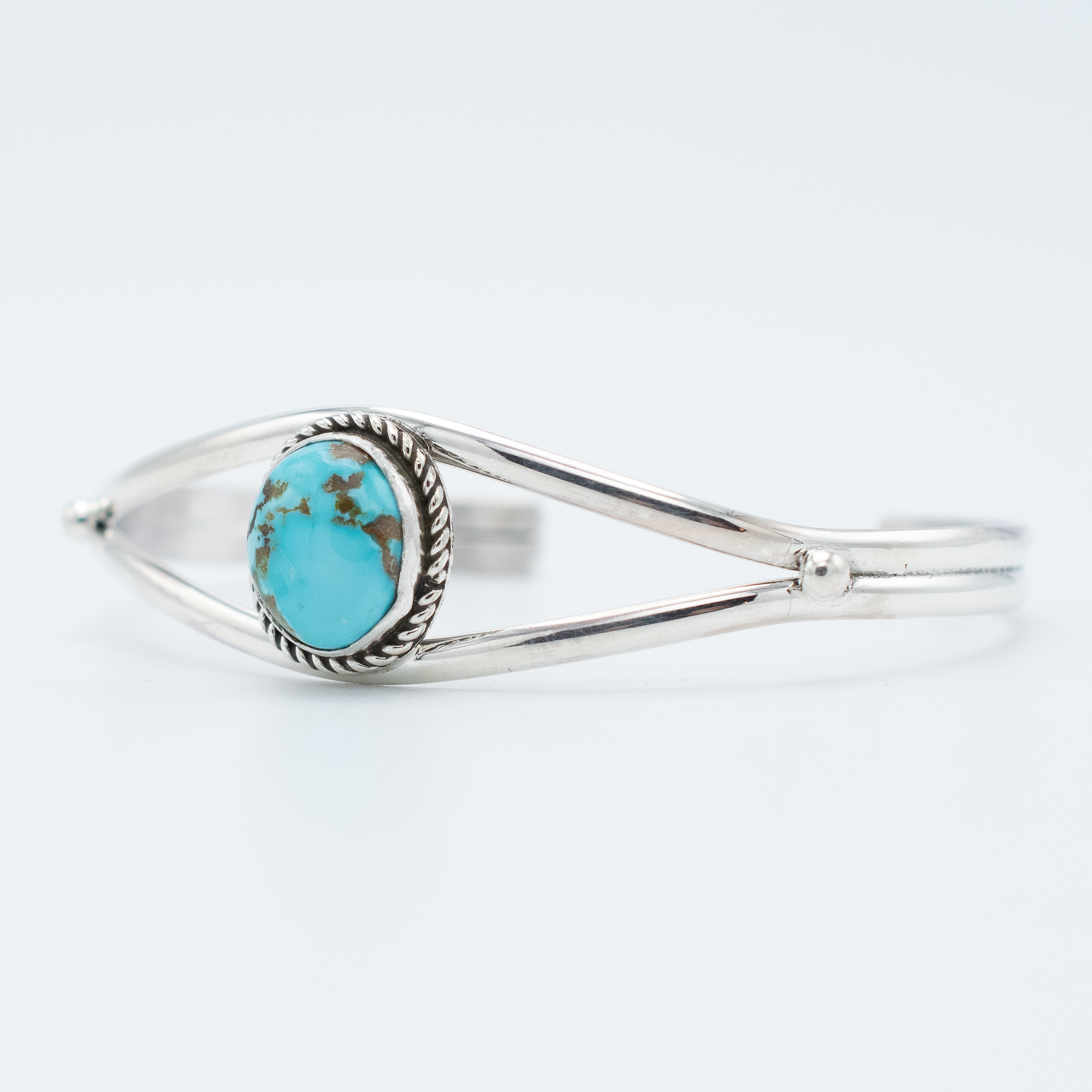Ruth Ann Begay set natural Thunderbird turquoise into this cuff with the kind of restraint that lets the stone speak. The blue is clean, the matrix is light, and the setting doesn’t compete. A well-made bracelet from a reliable stone and a trusted artist.