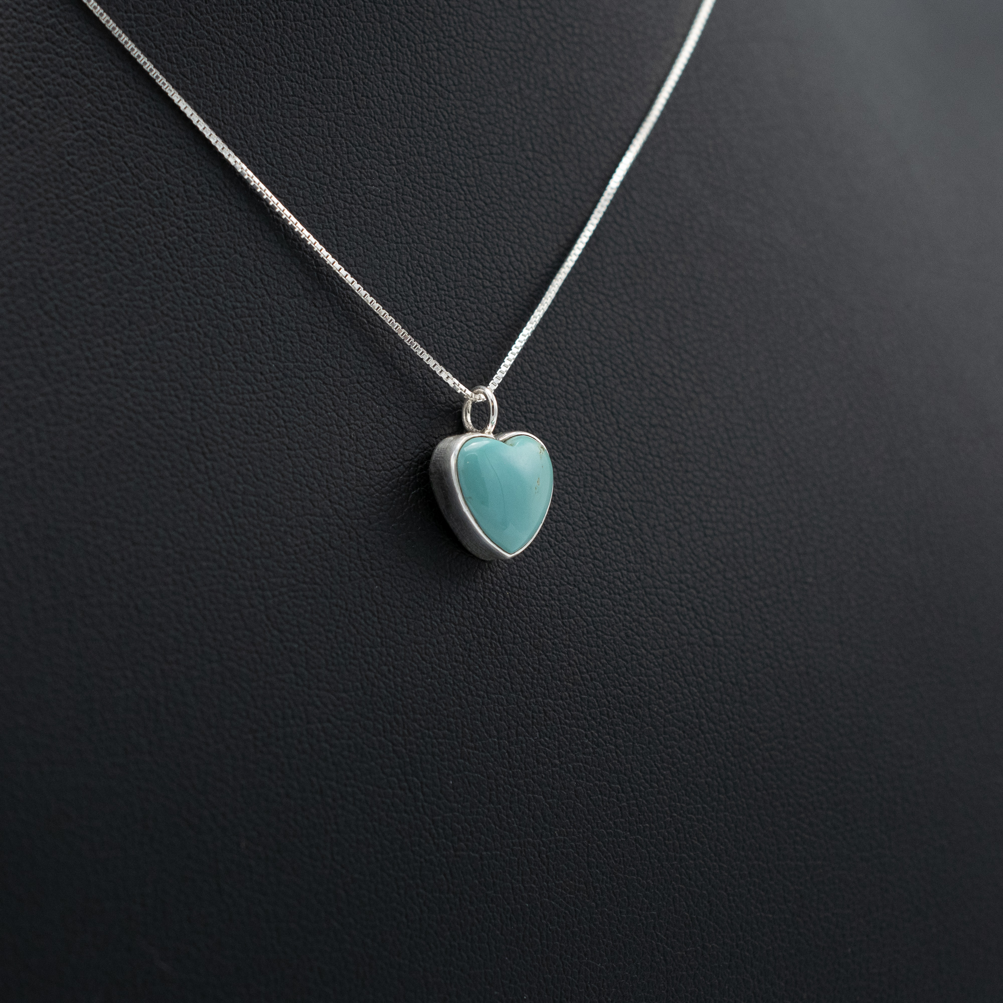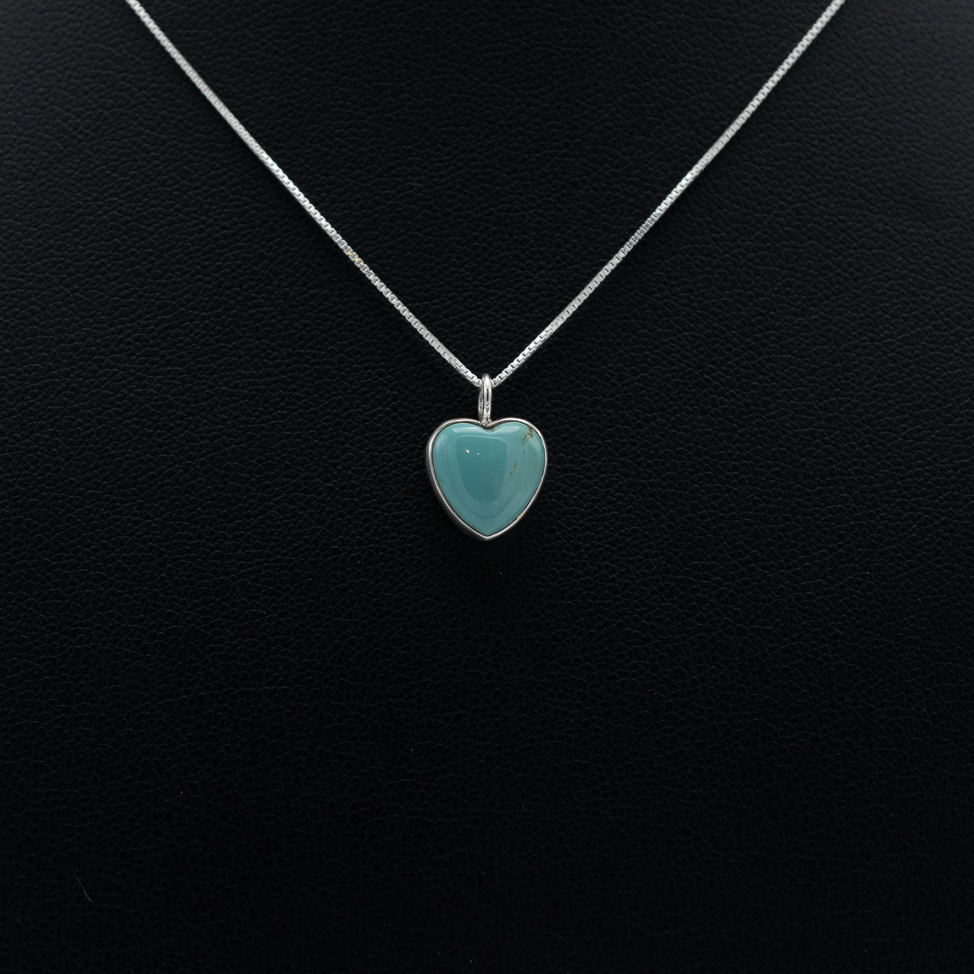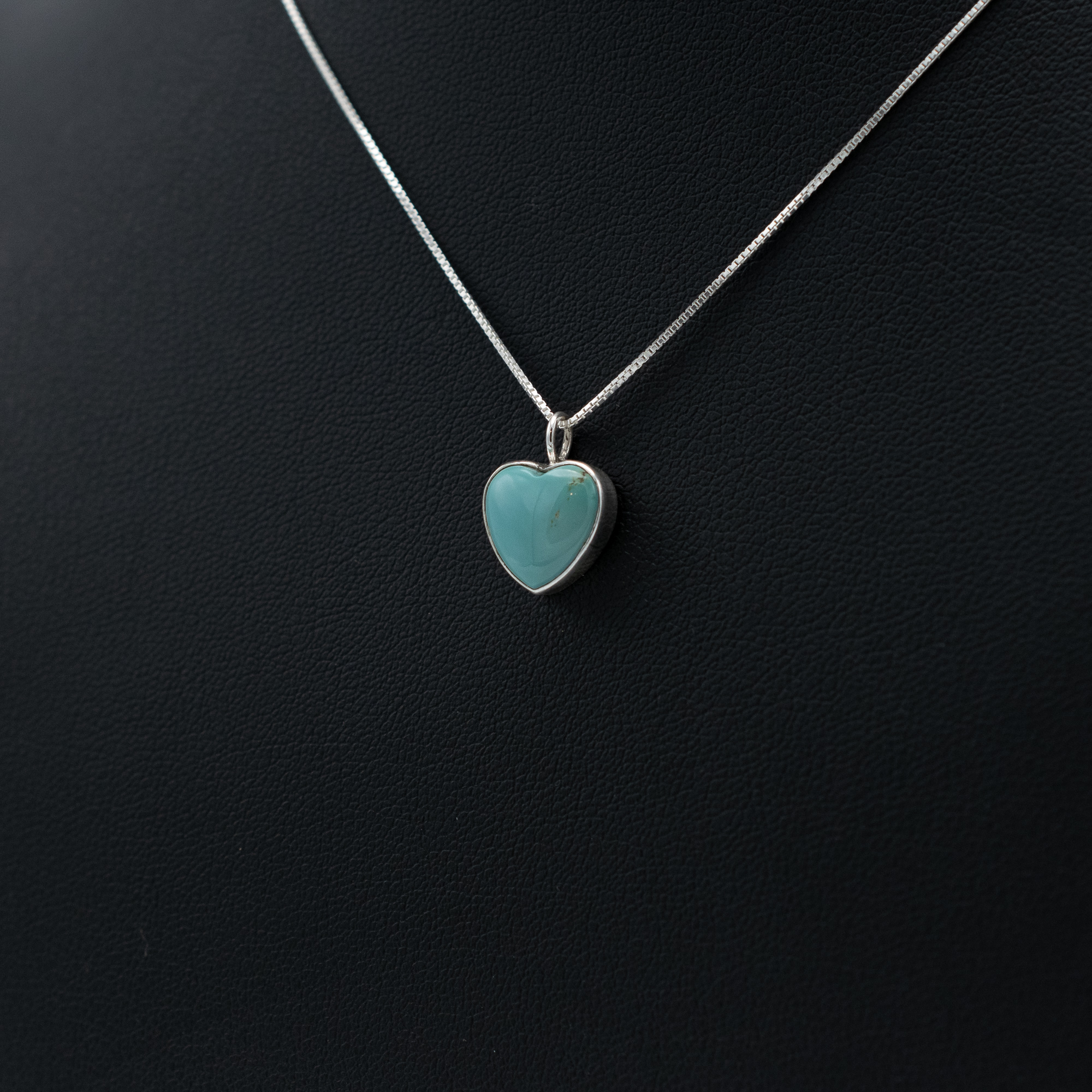 This Natural Turquoise Heart Pendant by Navajo artisan Bryant Martinez showcases a soft blue stone set in sterling silver. A simple yet meaningful piece, perfect for everyday wear or as a heartfelt gift.