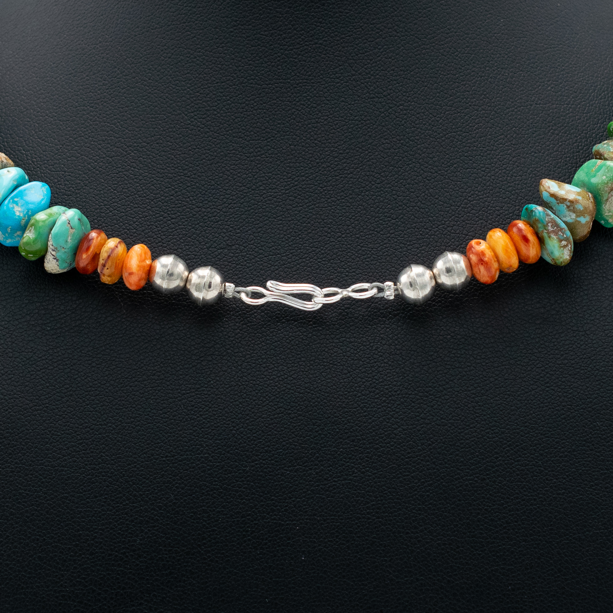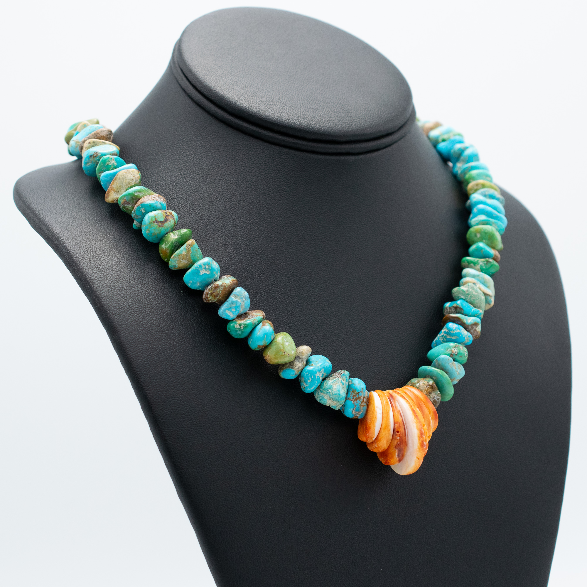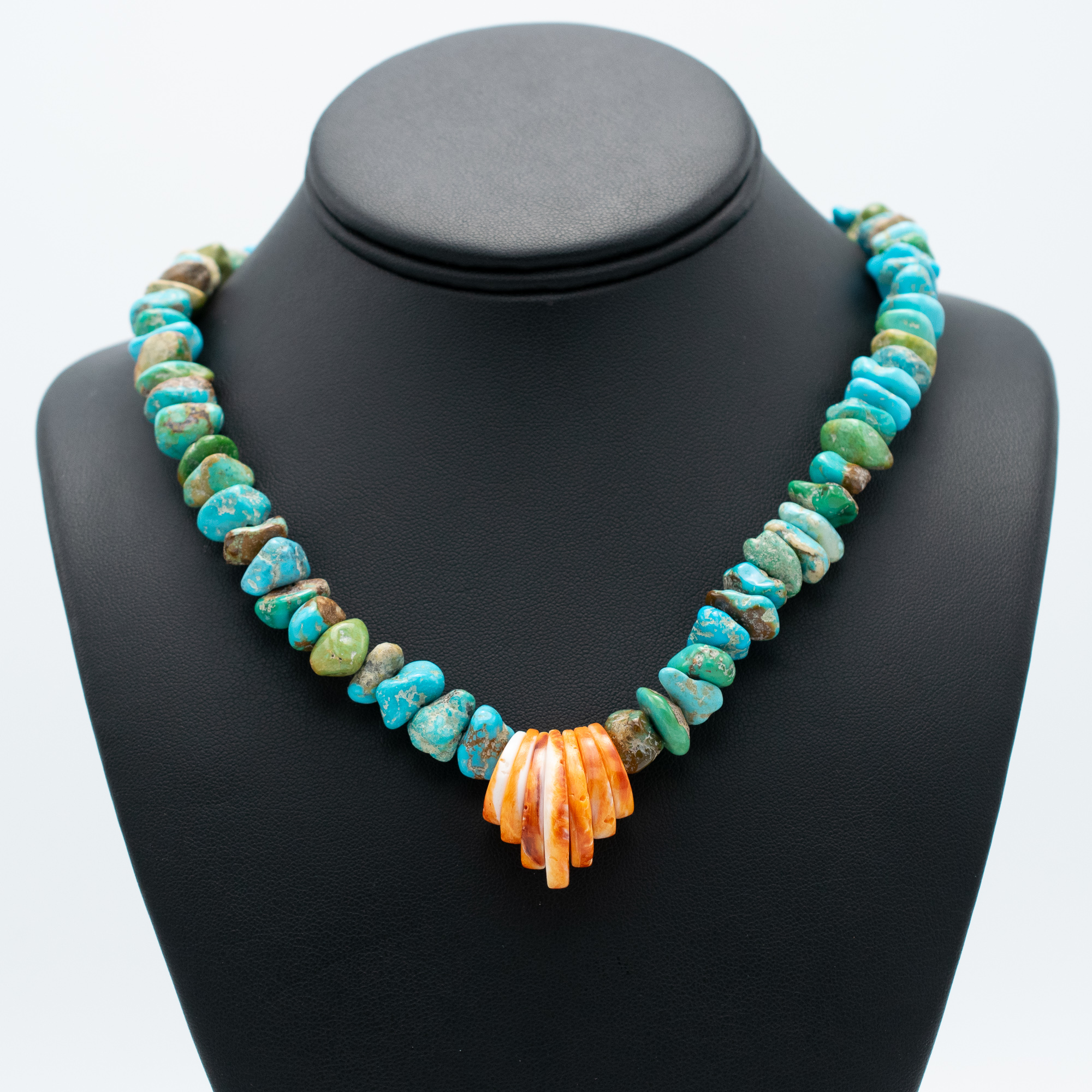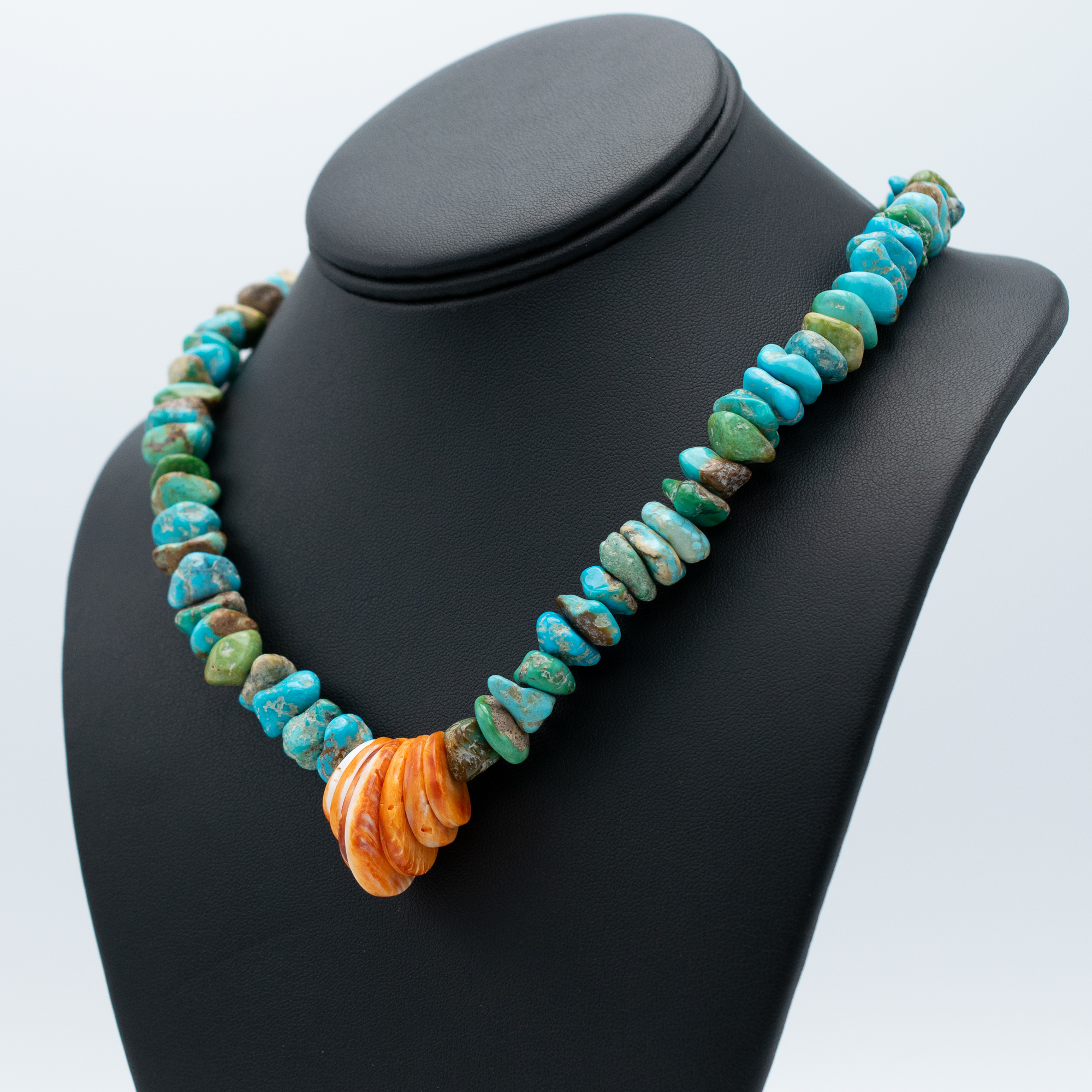 Enhanced Turquoise Mountain Turquoise and Spiny Oyster Shell Bead Necklace by Kathleen Sanchez, San Felipe Pueblo.
