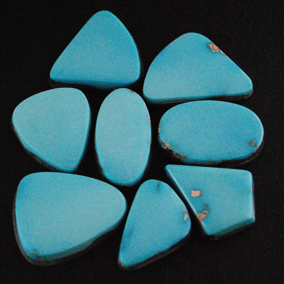 The owner of Castle Dome turquoise purchased the stockpile of rough stone from his uncle. Most stones retrieved from the mine were small, found in very thin “corn flake” formations. There were a lot of fingernail-sized nuggets found in the mine as well. In the 1960’s copper miners of the Castle Dome mine would gather unusual blue stones and put them in their lunch buckets. They would then go to a convenience store in Globe, Arizona. Here, an ex-forest ranger would buy these stones and pay them cash. It is from this old stockpile that Silver Sun got our Castle Dome turquoise.
