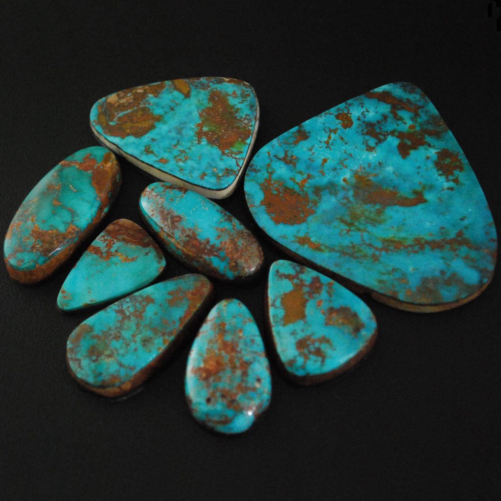 Pilot Mountain turquoise forms in thin seams, with some nugget formations. According to a former owner, the turquoise that formed in thin seams was high grade with deeper blue-green colors. Most Pilot Mountain turquoise is called “grass roots,” meaning the best deposits are found within ten feet of the surface.